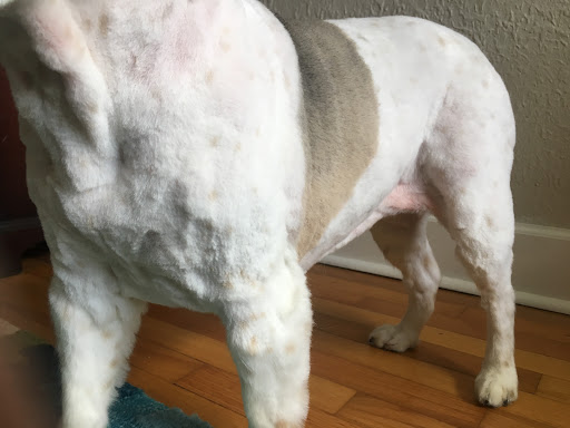 Later that night (her grooming appointment ended mid-day) her skin turned bright red (see photos) and she was visibly uncomfortable - scratching/biting at her hind legs. The following day (Saturday) she was painful and would snap at me if I tried to handle her at all (which is not usually an issue). This was heartbreaking to me. I'm not accusing All Creatures of doing anything malicious, but something clearly happened that made my dog painful the following day.