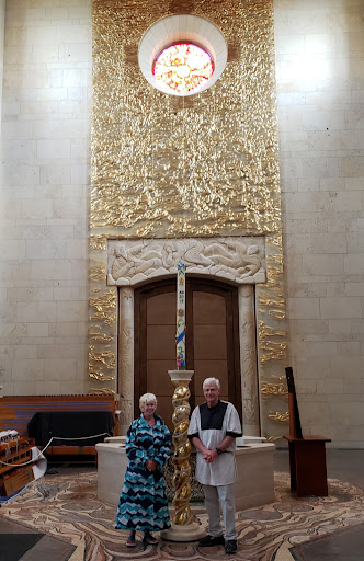 The church is amazing....strong echoes of European Gothic and Renaissance cathedrals, but with appropriate modern elements. Colors, symbols, renderings of scriptural stories uniquely conceived, and all by international artists. The thing is to find the parking and enter the buildings....Google maps is incorrect about the former and handicap accessibility was a challenge for the latter...no parking close to the entrance for wheelchair entry. BUT! We called from the car, were directed to parking, a golf cart was dispatched for a ride, and a wheelchair brought to me. The church is not open for independent drop-ins. A member must unlock it and accompany the visitors. The hours for tours seem more flexible than the site listing specifies. Starting with that phone call, and including half a dozen community members we met, all were cooly cordial. Vigilant? Polite introverts? Classic New Englanders of white, educated backgrounds? I noted on their website an offer for individual retreats...at a recommended rate of $400 a night with 3 meals. A photo shows plating of ample food along the lines of restaurants with 3 or more stars. Maybe that's Benedictine hospitality with a spa-like twist...