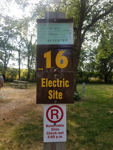 2-parter - Campground and Lake Keomah itself. Camped in the tent on an electric site. They also have non electric. The campground was pretty level, lots of space on our site (#16 in the corner). Fire ring with grates & picnic table included on all sites. There's a modern restroom and shower, pretty clean. Overall very peaceful, despite some kind of farmland behind us, which was actually quite pretty at sunset. You could hear the cows(?) from a distance, but it is not a loud or bothersome noise. Other animals we heard from the campgrounds were pretty basic: birds, frogs and coyotes. The raccoons werent bothersome, hahah. Very shy & easily scared off, we had one instance and they turned tail and never returned. Peaceful stay overall & very happy with it. The lake is not large, but it's pretty and peaceful. Nice little village around the lake (people do live there). But a few miles of trails around the lake will keep you busy. They're wide & flat, and require no effort to walk. Trails dont have much wildlife to view aside from your local amphibians. Trails lead around the beach, I dont recommend a swim though. Inhabited by many geese, as well as a large population of snails. The snail shells are scattered all over the beach - very cool, large shells. Saw a restroom at the beach. Also saw a shelter for gatherings, a lodge, and picnic space around the lake. Quiet setting for any visit, would recommend Lake...