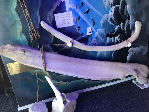 You'll see many ships and paintings of ships... but what makes this even more fun is that they have many things for children to do! They have a play mobile pirate ship for the kids to play with that kept my son's attention for a LONG time! They also have a selfie station where you take a picture in front of a cannon, complete with wigs, hats and costumes to try on! There was no one else in the museum when we went, so we could take our time and really have fun! Upstairs has other neat things to do, and even better... beautiful views of the water! They had a coloring station for kids that had a handful of plastic toy whales that kept my son's attention for a LONG time! They had special lighting that attempted to recreate and "under water" feel, and he had a great time playing with the toy whales there! They also had some whale bones, which I'm always fascinated by! Especially the size of a whale vertebrate!
