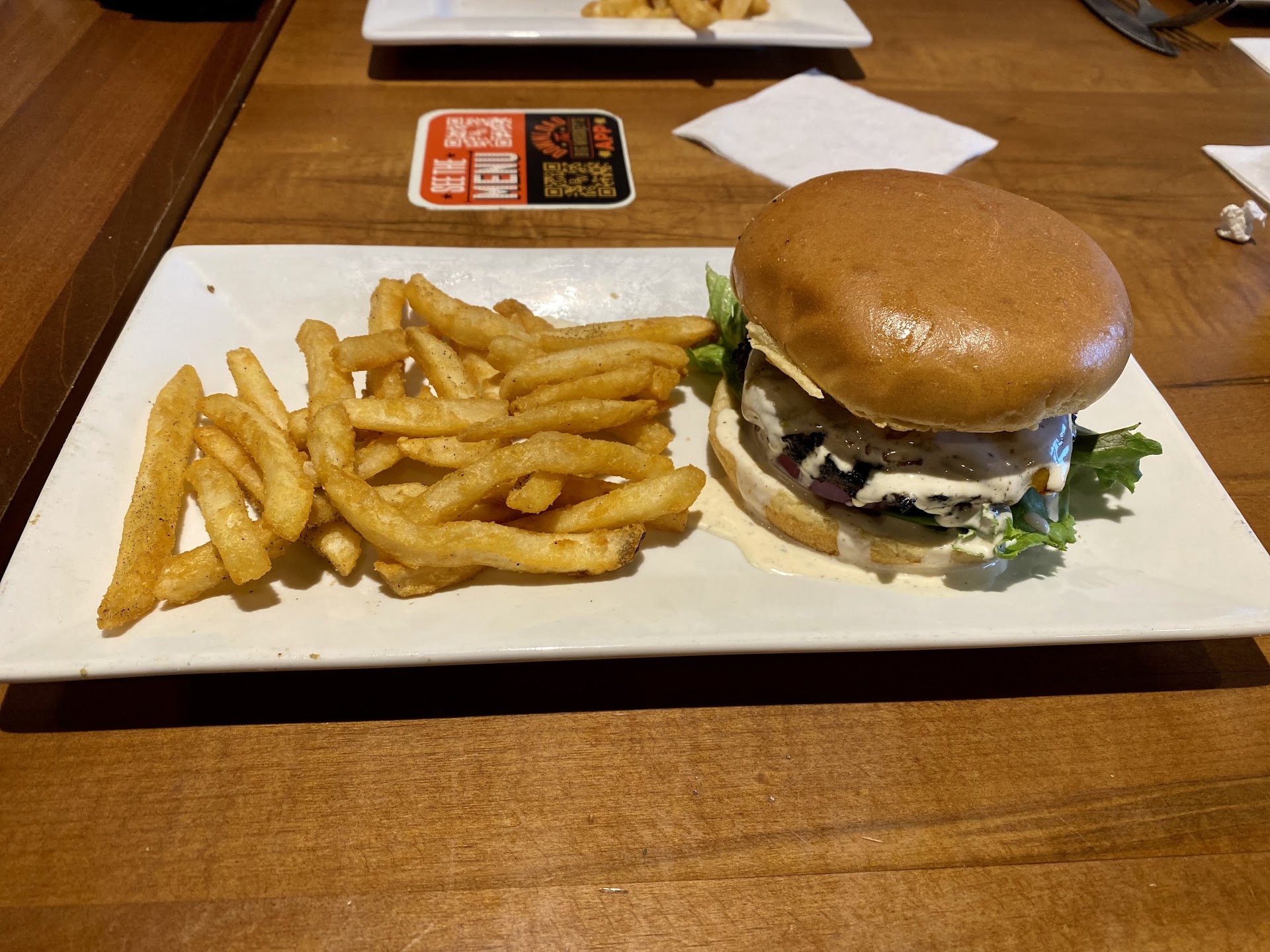 There was a generous portion of chicken tenders and fries on her plate. I believe that the chicken tenders AND the fries were the best I have ever eaten. Seriously. I have probably eaten 50 pounds of chicken tenders and 100 pounds of batter dipped fries in my lifetime. These were both blue ribbon quality! Top shelf food. Everyone else in our group ordered different hamburger and batter dipped fry combinations. Everyone said that their food was cery good.