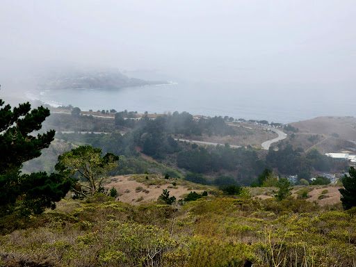 The view: We kept looking back at the water during breaks. We turned around at 1130 and the fog had cleared. Sweeping views of the Manor district of Pacifica and Mori Point.