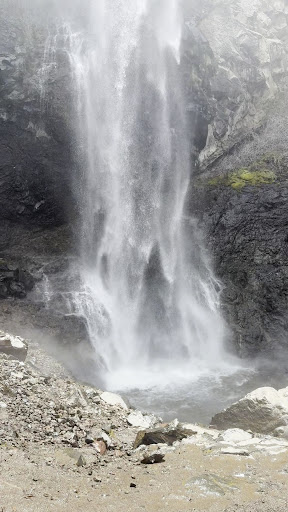 Over my many hikes up to the falls, I've seen them frozen solid with a bright blue color, the sound of water running behind a curtain of blue ice. I've seen them gushing and spraying the viewing bridge with a mist of water, and seen them barely running with piles of sticks and rocks laying at the bottom.
