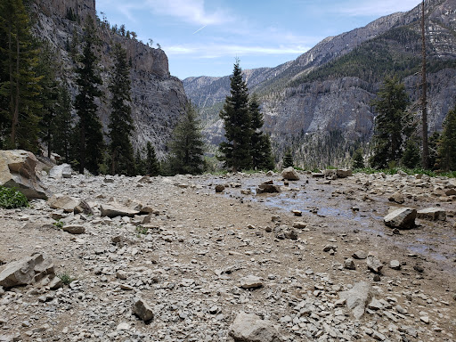 Read moreThis is a great hiking trail with beautiful views everywhere you look. At the parking lot it is about 7,500 ft elevation and 8,700 ft by the time you reach the falls. It is a 3.2 mile hike both ways and it is a rocky, steep incline most of the way to the falls. Before you get to the switchbacks there will be a log across the gravel trail... go right! That is where it starts. There are a lot of people and dogs so it can get tricky trying to pass on the narrow, steep, and rocky switchbacks. There were a few small landslides but nothing to be too concerned about. The view was absolutely breath taking at the top but there was nothing more than a trickle from the falls. There is a small cave behind the falls and a larger cave a short distance past the cave. This is a great place to spend a few hours and...