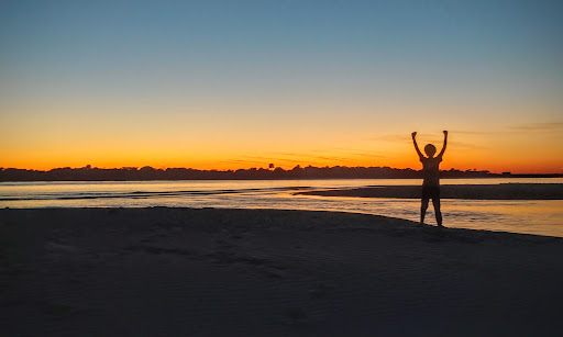 We crossed under the Claude Varn Bridge to the inlet side, walking along toward the north again to see the birds and fast-moving water as the sun set. The gradient of color in the sky is unmatched to anywhere else in this area as the light bends over this vast piece of Mother Earth. Awe-inspiring as always. The sun all but disappears leaving just traces of its light bending toward the inlet. As twilight begins to envelope the Inlet fish are jumping and swirling in this bowl of seawater teeming with life.