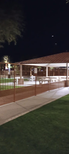 Nice park. It's inside of the big city park which also has the amphitheater, swim park, fountains, baseball, basketball and tennis, YMCA, plenty of walking paths, skate park, playground etc. Nice to have all that as well. Plenty of bathrooms nearby. Inside the actual dog park there is two canopies with misters and benches under them on separate ends of the park. Each also includes a watering station for dogs, which honestly isn't the best I've seen just consisting of a faucet, but does the job. Also a drinking fountain recently made filtered and with an area to stand up and fill a water bottle, for humans. Only problem for me is that it's a little too brightly lit, with the bright lights coming from above , gives it a basebalfeild feild sort of feel. Personally I think the actual dog Park at Miles and Seeley is much nicer, nicer grass and more small hills dividing up the park a little bit. All in all a great Park though. PS word to the wise : don't leave your boyfriend alone there, awesome place to pick...