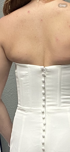 She took my dress in way too much causing me to now spill out of the back and there are pulls in the front now due to it as well. We had agreed at the first fitting that I needed a slight take in because I am small breasted. What I got was not a small take in and She gaslit me into thinking it looked fine at my appt. I am not a big person so the dress is clearly Squeezing too tight but regardless no one should feel the way I did spilling out of their wedding dress like this.