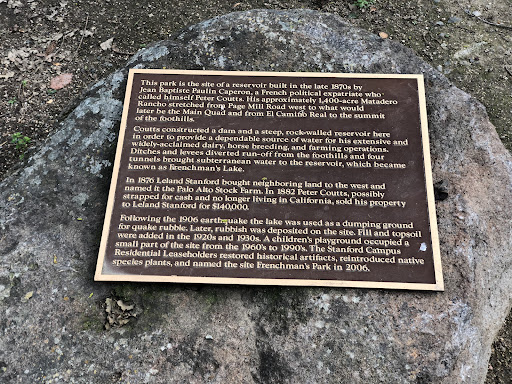 Always a peaceful walk through this tiny park. When I am really old it will be my go to place to walk. Compressed granite walkways, lots of benches, a water fountain, doggy waste bags and trash bins, a bridge remnant, historic plaques, wildflowers and redwood trees ... It's one of my favorite "little"...