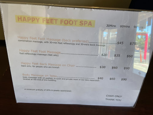 If I could give a zero or negative rating I would. The Spa manager was VERY dishonest. I purchased 4 Groupon vouchers for Happy feet foot spa. Today when I tried to make another appointment for the 2nd time just to use up my remaining Groupon vouchers, they refused to make an appointment for me and said I could not use my Groupon vouchers for another session. But it was not anywhere indicated on the Groupon purchase site that I could not purchase more than 1 session when I made my purchases earlier. This business owner is SO unethical, please do not use them. The place is pretty much empty on a weekend date when I went there for my first appointment, and I should have known better. They kept harassing me to add on additional services that I was not asking. Avoid this place at all cost, the massage is subpar as well.
