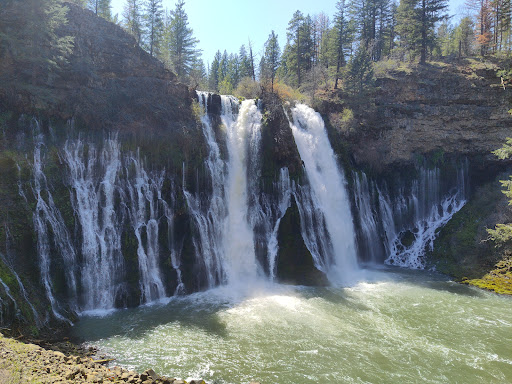 Amazing falls, semi easy hike for full loop 1.2 miles. Going down was paved with railing, wet in places. Going up the other side for full loop is not paved and no railing with a few resting benches along the way, it is uphill to get out either way you choose. No dogs allowed on trail to falls. $10 parking pass. The falls are right at the entrance to a beautiful big campground with lake Britton (a few trout species, spotted bass, hybrid bass, and possibly small mouth I don't remember.), rental cabins, tent & RV spaces. They have an on-site little convenience store with gift shop and ice cream cones! Lots of bathrooms, showers, a boat dock, Marina, and boat launch. You can fish below the falls with barbless hooks catch & release only! Above the falls I believe is regular fishing. The ranger said during summer months it is extremely packed. We went in April 2022 and it was very busy but not over crowded, and the campground and lake were...