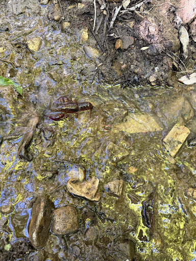 Read moreGreat trail for kids. As you enter, there is an area down to the left with a creek with lots of fun areas to explore. Logs to climb over, stones to step on to cross the creek, critters in the water - last time we were there we saw this crayfish. There is also a more open area in the middle with less shade that is heavily used by mountain bikers. If you cross over to the other side of the open area, there is another area with dense vegetation and some elevation gain. It's not a long trail, but there are lots of areas to explore and some great views of the bay if you...