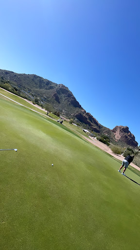 Stunning desert landscape! I was nervous at first because this place looked like a world-class golf course and I am definitely not a world-class golfer. Luckily this short course ended up being wildly fun and well suited to our group which was made up of varying experience levels. Each hole presented unique and fun challenges: Rolling hills, beautifully landscaped sand/water features, citrus trees heavy with fruit and majestic saguaros with little humming birds buzzing around. As wonderful as the course was, the most challenging “hole” was the miserably grumpy pro-shop desk clerk Chris who took our payment on arrival. The very sight of our smiling faces walking through the door seemed to have ruined his day - his attitude was actually hilariously rude. (I wish him the best with whatever he’s going through.) I contemplated only leaving 4 stars but Chris’ “mean mug” spiced things up a bit and made our day extra memorable. An ancient proverb tells us there cannot be light without darkness; So in spite of our initial greeting this really was a fantastic course and I can’t wait to return the next time we visit...