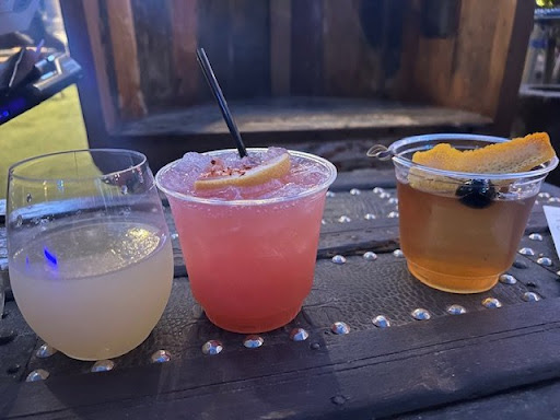 We were driven directly to the venue where a hidden "door" opened up from a hedge. As soon as we got out, we were handed a glass of (bad) sparkling wine and taken through VIP red ropes to the speakeasy out back. OMG the speakeasy is amazing! We were told we could order anything and everything on the drink menu, and that it was "on the house." We took that as a personal challenge, LOL!