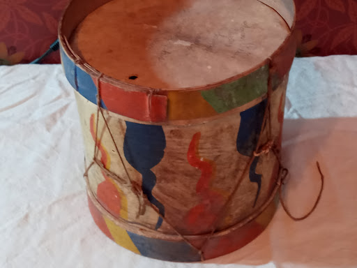 Upstairs, we saw the vintage toys. The little stuffed lion is adorable. I also liked the drum and puppets.