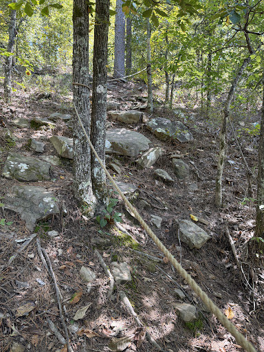 Pretty tough Trek down to the waterfall but well worth it. We parked in the open field next to the dirt 4x4 trail. About a 1/4 mile walk until you get to the descent. Definitely will need to use the ropes...