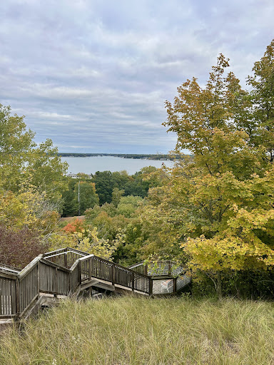 Read moreMt. Pisgah was a great place for short but steep hike. We parked about a quarter mile away and started at the trailhead near the campgrounds. After a brief walk in the woods, you are met with some pretty steep steps. It's then a straight climb up 200 steps or so to overlook both the bay and Lake Michigan. The leaves were just starting to change colors, so the views were beautiful! I wouldn't say this spot is much for a long walk or if you're trying to hike but more of a quick trip up to see a good 360 view of the area. The steps were well kept too and none of the boards seems to be overly broken...
