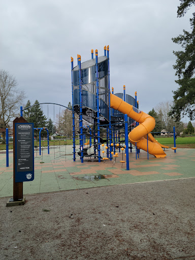 Kids love this park. The slide is so steep I imagine even I would get a rush Goin down it, 💯 lol. For some reasons big slides make kids want to scream down them so If you come here to read a book or walk ur furbaby, like the name suggests. There is a open play field. Might I suggest a quiet picnic on the opposite side as the playground. Oh There are restrooms, bball courts and the parking is right by the park so if you are human and it's been a long day n u are preferring not hovering over your kids and need a mommy/daddy moment. This parking lot allows for that where in some spots you can keep a close eye from your zen zone in the car... we...