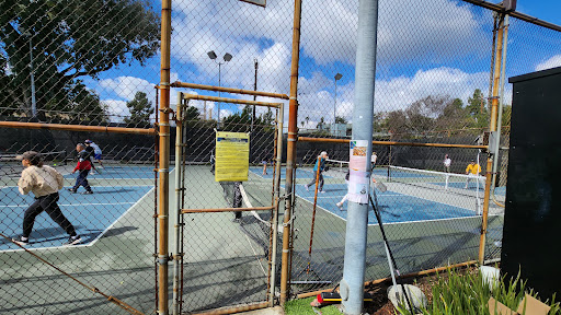 Good community park. Four pickleball courts located here with proper netting and lines. They play four on four off system here. Pretty good players it's range from 1 to 5 ranges. Randomly came to this place while passing by. Street parking available nearby. Depending on how fast the games are you're probably waiting 5 to 10 minutes in between games. They have a light switch at night time to turn on. Seems they stop playing...