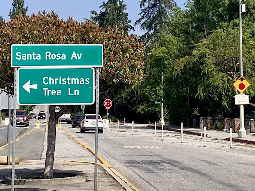 Historical plaque inscription: The 135 Deodar Cedar trees were planted in 1885 by the Woodbury Family, the founders of Altadena. First organized by F.C. Nash in 1920, the "Mile of Christmas Trees" has been strung with 10,000 lights each holiday season through the efforts of volunteers and the Christmas Tree Lane Association. It is the oldest large-scale Christmas lighting spectacle in Southern California.