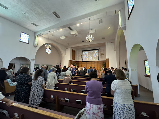 Environment/ The Building: The church has a traditional feel with a Spanish-colonial accent. Arches ran down the side of the sanctuary and chandelier lights hung from the high ceiling. It was well-lit with natural lighting streaming through the stain glass windows. The seating consisted of traditional cushioned pews that were 25% filled the congregation. It had a good sound system with a screen thatprojected words and visuals.