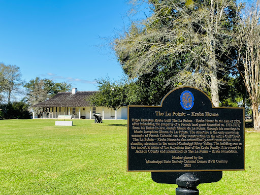 The Lapointe-Krebs house (built in 1757) is the oldest house in Mississippi, and may be the oldest remaining French Colonial vernacular building between the Appalachian and the Rocky Mountains. Built in the French Colonial era, this house served as a frontier family home sixty years before Mississippi achieved statehood. It was occupied by the LaPointe and Krebs family’s decendants until the early 20th century. The house is open for viewing following a 2014-2021 restoration effort funded by the Mississippi Legislature, MDAH, Jackson County, and The LaPointe-Krebs Foundation.