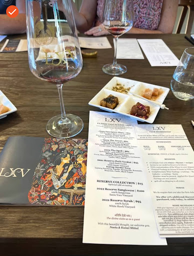 Wine novices, enthusiasts, oenophiles alike go check out LXV Wine in downtown Paso. You will not regret it. Dont mistake the simple and unassuming tasting room for just another tasting room. Our experience was truly lovely. First rather than a typical tasting room where the goal is to simply tell you more about the wines they offer and or sell, LXV takes a journey with you. Notice I said with you rather than take you on a journey. There is a difference. The experience seamlessly meandered through various regions, stories, life experiences of the founders, the host, ourselves, and of course the characteristics of the wine itself adapting in the spur of the moment. Second there was a spectacular and ‘unlikely pairing’ of spices. I say unlikely because most folks refute the ability to successfully pair spices with red wines. Not the case at LXV and I love that they affirm our long held belief that a wine spice pairing is an absolute joy if done right. They embrace it full on and in fact it’s clear that they have spent years developing the match. And the pairings are a match made in heaven. The true depth and passion to bridge between a simple tasting and the little pieces of Tuscany, Bolgheri, Bordeaux that they have brought to the wizardly and no rules attitude of the CA central coast (read maverick winemakers) results in pure magic from the simple yet elegant Sangiovese ‘Jewel’ to the mouthwatering Cab Franc. Check it out. Say Hi to Matt (our outstanding host) who never let us feel like we had a limited booked time at our tasting. Then, sit back and enjoy. Thank me...