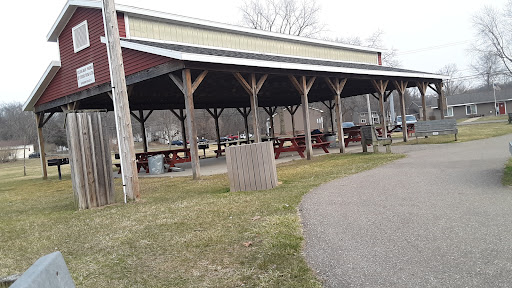 Excellent kids play place. 12+ swings, spinny tire swings, 3 slides, large maze like 2 story play structure with many bridges and rooms. The play structure has many possible fort, tag, hide and seek, etc opportunities for kids to go and play. Entire play area encircled by a 4' fence with 2 walkway entrances, opposite of the parking lot but adjacent to the shelter. Shelter is large with 12 picnic tables, electricity and installed park grills available. Contact info to reserve the shelter is posted, reservations are suggested to use for free. Many trash receptacles and park benches near the play area for overwatch of play area from almost all angles. Play area has a seperate tot lot for small tykes to play, sand, swings, benches, springy stationary riders, handicap accessible. Unpaved gravel 1/4 mile track adjacent to play area circles a football field with bleachers on both sides. Only drawback I have found is lack of open bathrooms or access to potable water. A portable toilet occasionally appears in the summer and fall for sports activities. Bathrooms are in the red building to the west but are not...