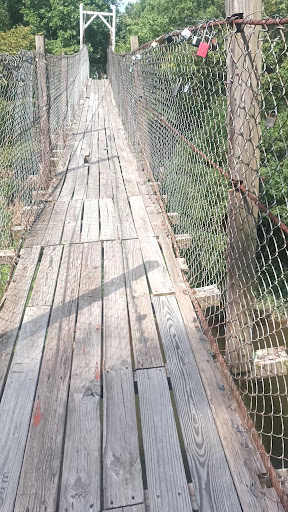 Ā Ā Ā Read moreAn injury and lawsuit waiting to happen. Looked like fun, but the family that warned us of the broken board in the middle made us nervous before we even laid eyes on it, and as I started across I couldnāt help but be nervous about the soft, warped boards. Even with only stepping on the parts where the boards sat on the supports, I felt like the thing could fall apart. The fall wasnāt what worried me, it was wondering what part of the bridge would snag my skin or lodge in my body as I fell. Definitely a ācross at your own riskā situation, but if you want to do it, Iād do it soon because I donāt think this bridge is gonna be around a lot longer (either needs closed for restoration or just closed for...