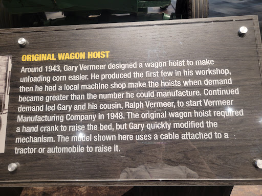 We really enjoyed the Vermeer Museum, seeing the history of the company, how it was started & how the company recovered from the tornado in 2018. There is a video that talks about the tornado, how it affected the company & how quickly they recovered. Pella Iowa is a pretty town & the Vermeer Company is a strong part of the community. The museum is free; there is a small gift shop...