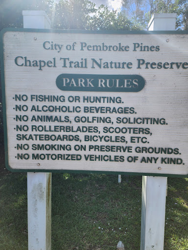 In conclusion, Chapel Trail Nature Preserve in Pembroke Pines is more than just a park; it's a testament to the beauty and resilience of Florida's natural landscapes. With its rich biodiversity, educational opportunities, and serene ambiance, Chapel Trail offers a refreshing escape into the wild heart of South Florida.
