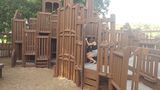Good place for younger and older kids. They have a semi-split section for younger kids to help keep them out of the path of the older kids running around. There are a ton of various physical activities for all the kids; rope bridges, monkey bars, tire swings, slides, ect. Maintenance can take a while if something breaks, currently a swing has been broken for nearly a week now. Every few days someone comes around and picks up trash left by parents. There's a couple baseball fields, a sand volleyball setup and a small soccer field. They have a covered pavilion in the woods by the 'kingdom' and another by the front building. I believe the first is first come first serve, not sure about the latter. The parking lot is one way, but I've occasionally had to dodge parents who don't seem to understand that. The bathrooms are portajohns. In the winter they usually have one, but over the summer they'll have a lot more; last summer it was usually 5+. There are a lot of trash and recycling receptacles placed all around, so there's really no excuse not to use them. Occasionally large groups will make use of this place as a field trip, but it's a huge park and usually isn't sardined even...
