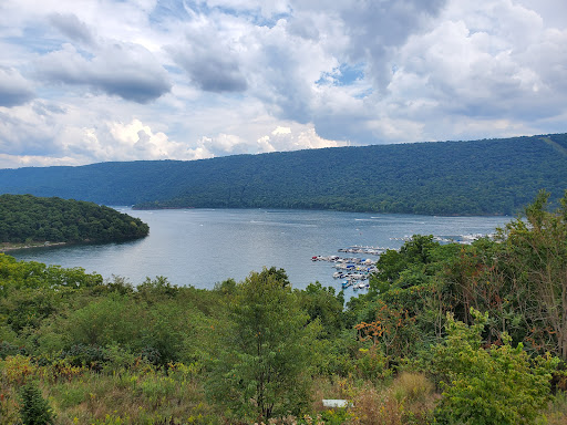 The Raystown Lake Visitor Center is free to enter but does have visiting hours depending on the season. It has a small gift shop, restrooms, air conditioning, water fountains and a station to refill water bottles, a free wildlife information exhibit which provides taxidermy animals to look at (deer, bear, fish, birds, reptiles and more), wildlife information, animals skins and furs to to touch and observe, information and videos about Raystown Dam. It also has a large deck on the backside of the visitor center with a scenic view of the lake and mountains. It is handicapped accessible and has an elevator to get to the lower walkway outside, which leads to a nice little garden area where you will see signs to to different nature trails. There is a pathway around the outside of the visitor center to observe...