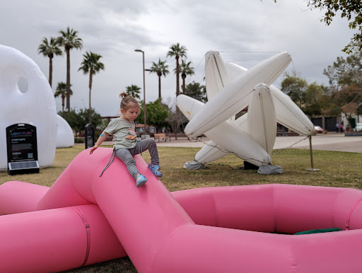 Artistic touches: The park is adorned with unique art pieces like bronze sculptures, tile mosaics, and the interactive "Back on Track" installation. These add a touch of personality and spark imagination. Harmony Park: This dedicated area with musical instruments like bells, tubes, and a xylophone is a unique and engaging space for children and adults alike. It's a fun way to explore music and create your own melodies. Pleasant atmosphere: The park has a well-maintained walking path, shaded picnic areas with architectural trellises, and a spacious grassy area, creating a peaceful and inviting atmosphere. Old Town charm: The location near Old Town Peoria adds to the appeal, allowing you to combine your park visit with exploring local shops and restaurants. Room for improvement: