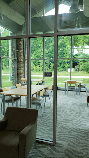 I cannot express how much I love this library!!!! I actually look forward to coming here when I can. Really spacious, plenty of study rooms. I love how the windows are tall and the building is surrounded by nature, so when you look out all you see are trees. It's very calming. The children's room is beautiful, it's so colorful! There's a huge selection of materials, especially the DVDs, they have every tv show imaginable. Great place to study, read, or just simply relax.