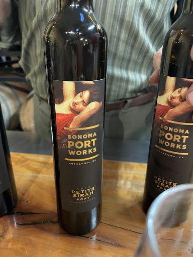 What a wonderful find in Petaluma! Just 5 or 6 blocks southeast of historic downtown in the refurbished Foundry Warf complex next to the Petaluma River. Sonoma Portworks uses grapes grown in the Wine Country area to create wonderful fortified wines. [BTW - there is a tasty place just up the block called Aqus Cafe if you wish to grab a bite to eat before port tasting. But cheese boxes are available for purchase in the tasting room.] Best to make a reservation, as the tasting room is open Thurs - Sundays only from 12-5 PM. If you are not a fan of traditional tawny port, don't be discouraged. Additionally they offer unusual Chardonnay (light and fruity) and Rose (floral and peppery) ports which are lovely for summertime sipping. We purchased a bottle of each. The more traditional red blend ports were tasty; our favorite was the Petite Sirah Port. But we could not leave without buying bottles of the Cask Reserve (very jammy & spicy but smooth) and Maduro Reserve (deliciously tawny) ports. If you like to cook, be sure and try their side products of Sonomic "Almost Vinegars" in Red or Gold flavors. Non-alcoholic grape products, they are wonderful "secret ingredients" to add to salads, cooked veggies and meats. Also great drizzled over fruits or cheeses. We felt the prices were very reasonable. They offer a wine club you may join with a three-release commitment the first year. You receive 15-25% discounts on your orders and complimentary tasting fees. But it is not a hard sell. We signed up because we know we want to purchase more of their products in the future. We had a wonderful tasting experience with Murray. He was knowledgeable and laid back, able to answer all of our questions. We just had such a good time talking with him that we forgot to sample the Deco & Duet dessert wines. Oh well, that leaves something for us to try on our next...