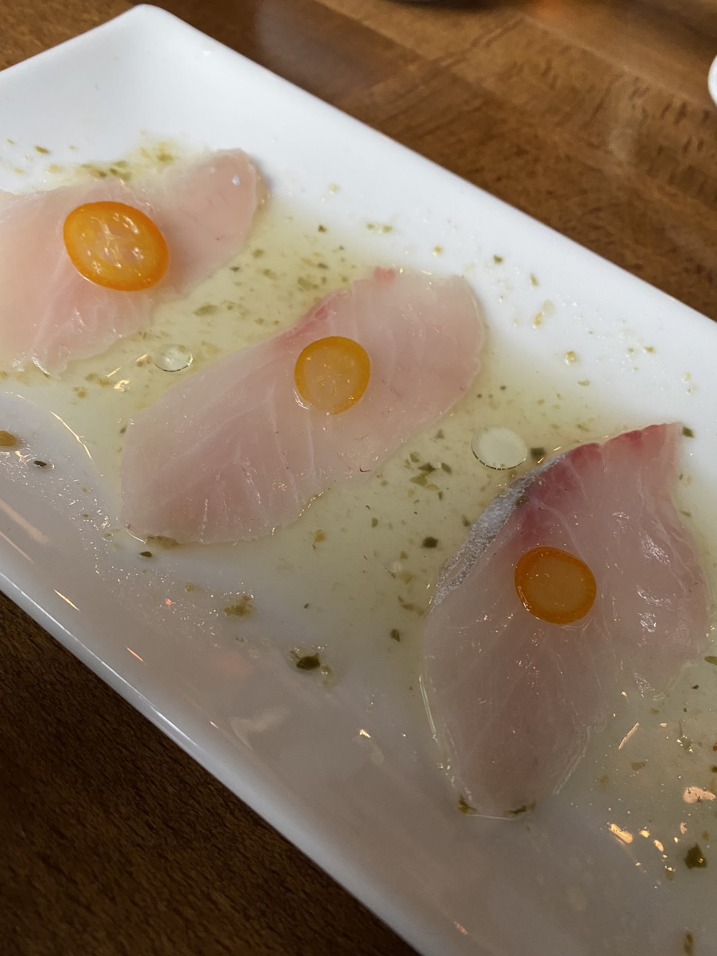 Hamachi Jalapeño - pieces of yellowtail with ponzu. Very good if you like sour like I do
