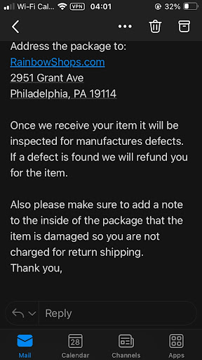 Read moreCouldn't give 0 stars so I had to put 1. Customer service is all the way rude and just disrespectful. I spent $138 on this web site, package was sent to my po box. I got 2 expected delivery dates. First they sent the package all the way back to where it shipped from. Then they tell me the 2nd date. Ok, all the while I'm calling and going to the post office, package never got there. By 2nd delivery date I was told by customer service to wait until the next day. After it was already 2 and half weeks. Then the package still didn't come the next day and I was refused a refund. I had to call my bank and file a claim to be refunded. I must have called them and FedEx more than 10 times just to get no results and at this point I won't when go in a rainbow store. When I asked to speak with a supervisor she said someone will call u back. Still haven't gotten that call .. This company needs to train the people they have dealing with their customers on what customer service really means and how to talk to people. Maybe they should do like undercover boss and see for themselves what they workers are doing. Company just lost a good customer because I will not even go in their...