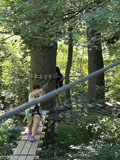 Read moreI honestly love visiting this spot. I've been there now twice with my work fam' for some good ol' team bonding (yes, it works). It's a beautiful experience & adventure hidden in the cut of Fairmount Park. The staff immediately made us feel welcome and cared for (5 star customer service). We were led through a complete safety session and practice course (low level). Safety is important to them, and this made us feel even safer. There are four different courses of skill levels. One of them is mostly zip-lining, so if you're just looking to slide through the canopy, that's an option. Course 4 is challenging but doable, and they'll offer you tips if you really need them. There's a guide on the ground at all times, ensuring everyone is OK and still having fun. We went at the end of April, so the bugs weren't bad, and the bees (yes, there's carpenter bees) were friendly and preoccupied with doing what bees do. You can try as many courses as you'd like in your alloted time, and that could be cool if you just wanna do the zipline course a few times while other folks explore. I wasn't too sore afterward, but I wouldn't plan on taking a bike ride out there and back. Oh yeh, they do have porta-potty's and they are clean.