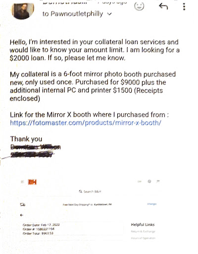 I messaged this place to see if I can get a collateral loan on a Mirror Photobooth I purchased for 9k. I sent them the proof of my receipts and specific size details (6 foot height), as well as the link to the website where I purchased it so they can get more details about it. They agreed and told me to bring it in. I had to rent a vehicle for 2 days and travel to the Poconos to pick it up. After all of this, when I finally arrive they tell me they can't give me the loan because it takes up too much space and it's niche product that will be difficult to sell in their market. I can totally understand that, but why didn't they simply tell me this before having me spend money, traveling, and waist my entire day bringing it to them. I contacted 2 other pawn shops prior to them, gave them the same detailed information and they simply contacted me back telling me the item was too big and they couldn't take it because of the space.
