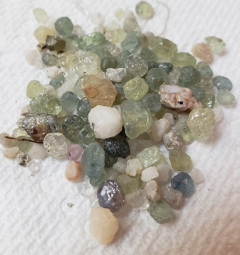 We have always collected the stones from our 3-4 bags and buckets per year, and in 2021 had our first collection sorted, heat-treated, and faceted - resulting in over 220 carats of beautiful gems. We have made custom rings, earrings, and pendants from these gems, and their value collectively has far outweighed the cost of buying the gravel, heat treating the gem-quality stones, having them cut, and making unique jewelry (see pics).