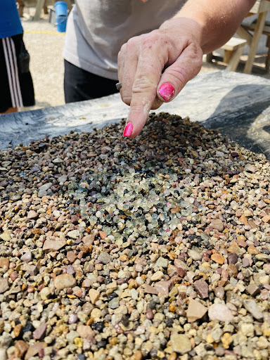 The way the gravel is sorted by the attendants pushes almost all of the sapphires to the top of the gravel pile when the sieve is flipped onto the table. This makes for a great experience, because multiple sapphires are usually visible before starting the longer part of the hunt.