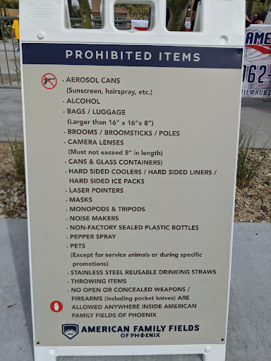 This is the first time I’ve been to the stadium, but I have been to all the other stadiums in the Phoenix area. I have come with the same purse every year. I even have a picture last year at the Rockies Stadium with the exact same purse that I’m about to mention.. it’s A small Michael Kors bag that has never had any issues with entry. This is the first time that one of the security guards stopped me and said that I cannot come in with it because it was not 5 x 9. It was 5 x 10. I wasn’t even aware of this rule as I’ve never stopped so I didn’t even know it was a problem… until it was. One inch off….. I was parked half a mile away after I just walked there and then had to walk back and then come back again. Meanwhile, the security line to the left of me had someone with a backpack that wasn’t see-through And also another woman who had a bigger purse the me which I advised the security guard to look, and then reconsider making an exception for me.. she got loud and said absolutely not and told me to move out of line or, they would have to revoke my privilege for entering that day.. quiet rude and absurd - I wasn’t escalating. I was just asking questions because I was shocked and making observations and asking her to look at my observation of other people entering, who are breaking the rules, she’s trying to stop me for. This security guard was on a clear power trip and it was extremely unfair to make me walk back given how far the parking was, and then come back again for such a small discrepancy while others were walking in with larger items. This whole ordeal made me walk 1.5 miles before I was even able to get to the game.It’s the fact that others were given an exception, and I wasn’t that felt very unfair. If you’re going to do this to one person you need to do it...