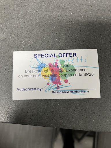 Read moreI recently had the pleasure of visiting Breakthrough Smash Room, and I must say that Bill truly made my experience unforgettable. His genuine personality and enthusiasm shone through from the moment I walked in.