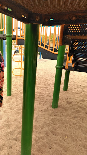 Sometimes there are people sleeping in the tunnels or the kids toys but they pick up after themselves and they don't bother anyone. They usually go on their way when we arrive or kinda just hang out till we go. We've never had any issues with anyone, I think we're all just trying to get by and live in peace. Anyway... There is play ground equipment for older and younger kids. Thankfully no sand (I hate sandlol)it's wood chips. Separate swings for little ones and older kids. There is a field to the east. A basketball court. The grass is really plush and well maintained here,I like to bring our dogs to play. The neighborhood kids all come here to hang out a lot so there's always someone for our kids to play with and they have shaded seating on the north side. I don't know if they have bathrooms. It's really a chill area and there's a big fence all the...