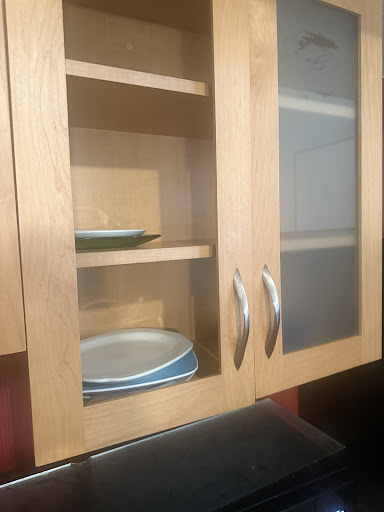 One of the cabinets had a sparse selection of plates. And they were kind enough to remove the smoked glass for easier access.