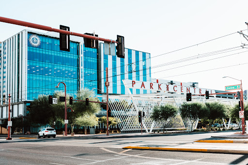 This former mall is pretty nice as an office plaza. There are restaurants scattered at the front of the place, facing Central Avenue, I had Jamba Juice which was really good! Within the complex, there are old relics of the former mall; there are big two-story medical offices residing in former department stores, like Diamonds/Dillard's and JCPenney. There's a splashpad that glows, probably best to go at night for that, and also because it's really hot right now. Unfortunately, the parking is pretty poor, or rather, the pavement. They should really fix that someday as it is extremely rough. I also wish there was more retail, it makes sense since this was formerly a mall, and with all the empty space, it probably wouldn't hurt to add some more stores. Anyways, there is a security robot named Parker that whizzes by patrolling the place. I love it because I feel safe with some good security, and it looks cool too! I did get to see it on the move. If not for the other stuff here, that's probably the...