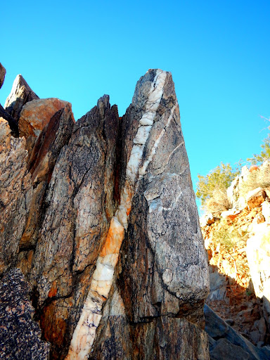 This trail has a GIANT quartz rock beside the trail. And from there you can look and see many other Quartz rocks. Large and small. And if you venture off the main trail (who would do that) you might end up at the top of that one particular area and find yourself surrounded by Quartz rocks, and giant Quartz rock formations (see the photos).