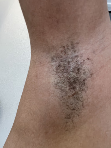 Received electrolysis for 4-5 months on my armpits and eventually started to get hyperpigmentation. I took a break and then began laser hair removal b/c I had success on my bikini area w/ another business a few years ago.