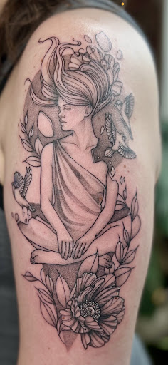 As for myself, I followed them from their previous home in North Carolina! My daily use wallet for the past year was made by John, and I have two tattoos from Jordan with plans to get many more. I couldn't tell you how many compliments I receive regularly on all three. I have no problem making the 8 hour drive if it means I get to come here (if only I could afford to do it more often!). Ravensgate makes me feel comfortable and at home, like hanging out with old friends, and that means a lot coming from someone who has bad social anxiety.