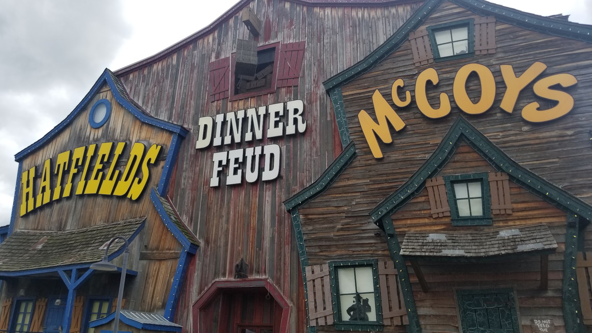 Read moreWe ordered our tickets online about 1.5 hours before the show started and they had them ready for us at will call with everyone else's. Our seats were close (we upgraded to premium, I think) but all the way on the side of the stage. That did interfere with seeing some of the show that takes place a bit further back in the stage. That didn't always matter because sometimes they would show the action on the big screens they have. We got there an hour early and there was already a line to get in. The line was interesting because you can watch various goats and chickens up front to entertain you. They let us in I think 45 minutes early and parade you through the gift shop into a photo both (this one with a green screen) and then proceed to seat you. You sit at a table (either high top or low) or maybe even bar style seating depending on your ticket. Make no mistake about this - dinner is served before the show. In fact the show doesn't really start until everyone is done eating - so be forewarned to get there early - I'd say an hour early! The food was good - we had been to Dolly's Stampede recently and my wife and I both thought it was better than the food served there. It was all you can eat - and family style (they serve the food to your table in buckets). We only had three people in our party and at our table but they fed us four peoples worth of food so we didn't want anymore - and they didn't ask. The fried chicken was good, the mashed potatoes were good (my kid at most of them), the corn on the cob was on steroids with thick and long kernels, the cole slaw was what you'd expect. The pulled pork wasn't as dry as the Stampede, it was nicely sauced (but there was no extra sauce like at the Stampede). The biscuits weren't as good (or big) as the stampede but still good. The show sorta starts while you have food - with a song - then shifts into an advertisement for other stuff, then takes a break while commercials play (not annoyingly though). I think this whole charade is mostly to give people time to finish eating and the wait staff time to cleanup because you don't really see your wait staff again once the show kicks into gear. They do remind you to tip your wait staff ($4.50 per person at your table is the suggestion). The show itself was kind of all over the place for me. The lead lady, the sheriff, was kind of hard to hear because she didn't enunciate like the lead guy (the mayor). The sheriff also broke into uncontrollable laughter that wasn't part of the show when a gun sound effect didn't fire at the right time. It was kinda funny for everyone though as the whole theater laughed. The story was all over the place, the performances were pretty good but not as well rehearsed as the Stampede. The special effects were somewhat shocking - there's a pool complete with high diving and fire scenes even, that was cool. Overall in terms of food & entertainment it was on par with the Stampede for a lot less money. I suppose the Stampede is a little more elegant, a little classier - but the food & price are better at this show. The show let out 1hr and 50mn after the posted time (9:50p in our case) - but again - get there...